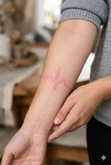 A pink heartbeat tattoo is simple but meaningful. I imagine a thin line with a soft pink glow running across the skin. It works great as a minimalist design.