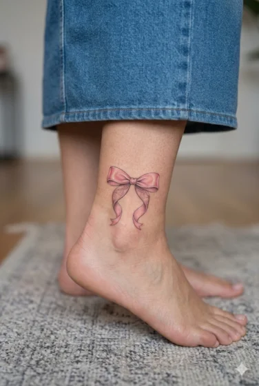 A pink bow tattoo feels feminine and stylish with a vintage touch. I like adding soft shading to make the ribbon look silky and realistic. It works beautifully on the ankle or back of the arm.